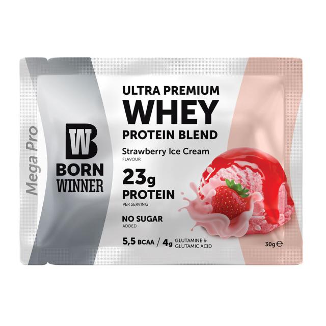 12 x Born Winner Суроватъчен протеин на прах - Ягодов сладолед 30гр. 30 гр