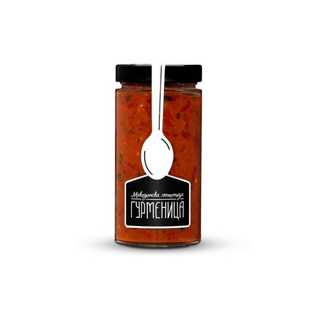 Гурменица Македонска лютеница се приготвя от печени червени чушки, доматено пюре, слънчогледово олио, захар, чесън, магданоз, сол.Гурменица дължи прекрасния си вкус на висококачествените зеленчуци, които подбира. През 2016 г. продуктите са в етап сертифициране на IFS.