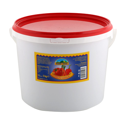 питейна вода, пюре от домати / 18% /, от чушки / 10% / и от моркови / 6% /, захар, стабилизатор: модифицирано картофено нишесте, слънчогледова мазнина, сол, подправки, регулатор на киселинността: лимонена киселина, консервант: калиев сорбат, аромат