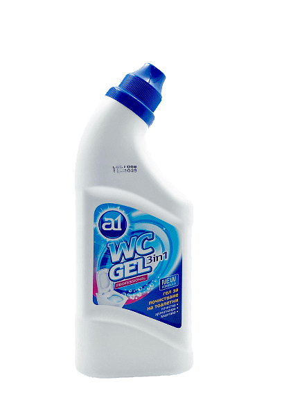 А1 WC ГЕЛ за почистване на тоалетни чинии, отходни тръби, вани, мивки на най - трудно достъпни места. С активната си формула 3 в 1 почиства с лекота, създава защитен филм и остава свеж аромат.