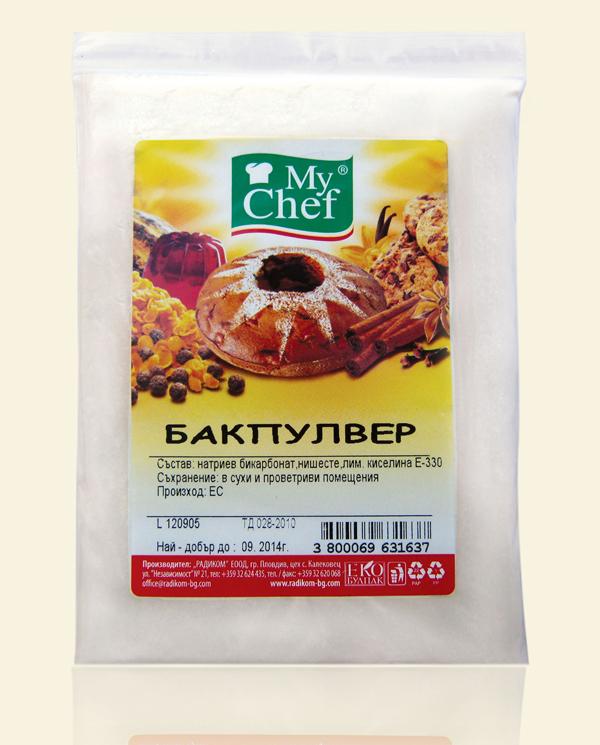 Съставки: Набухвател: сода бикарбонат Е500, царевично нишесте, киселинен регулатор: лимонена киселина Е330.