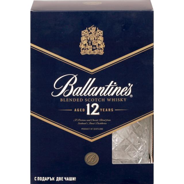 БАЛАНТАЙНС/BALLANTINE'S ШОТЛАНДСКО УИСКИ С 2 ЧАШИ, 12 ГОДИШНО (700 МЛ) 700 мл