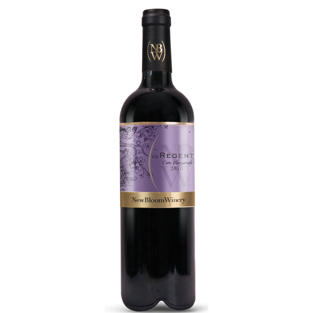 Червено Вино Регент Ню Блум Уайнъри е, вино което ще удовлетвори напълно вашия изтънчен вкус. Червено Вино Регент Ню Блум Уайнъри e: Вино с рубинен цвят с топла дъга. Вино със свежо начало във вкуса, стопени танини, средна структура, приятна дължина и сочен финал. Вино с аромат на черни горски плодове и финеса на благороден дъб. Подходящо за консумация с червени меса, дивеч, избрани колбаси и сирена. Червено Вино Регент Ню Блум Уайнъри се предлага в бутилка от 0,75л.