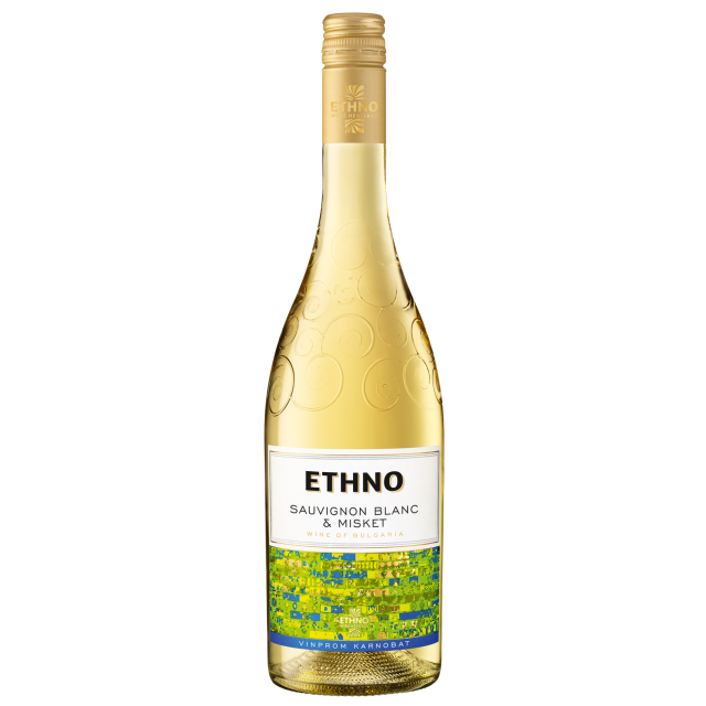 Ethno Sauvignon blanc & Misket ETHNO Совиньон блан и Мискет е живо, игриво и изпълнено с обещания вино, което си отива на почти всичко. Сортов състав: Совиньон блан, Мискет. Цвят: Совиньон блан е характерен със своя интересен, цитрусов нос, докато Мискет е известен с нежния растителен характер и билковите си акценти. Ако ги съчетаем както в ETHNO Совиньон блан и Мискет, се получава живо, игриво и изпълнено с обещания вино, което си отива на почти всичко. Аромат: Нежен и лек с растителен характер. Долавят се свежи билкови и цветисти акценти, зелена ябълка и свежи цитрусови нотки. Вкус: Колко е добър ETHNO Совиньон блан и Мискет? Може само да предполагате. Игрива елегантност, съчетана с финна структура и приятен мек финал. Съчетание с храни: Пролетни интересни салати, рибни предястия, морски дарове със сметанов сос, полутвърди сирена и още...и още... Препоръчваме го: Със слънце, плаж, пясъчни замъци и около басейни, та дори и надуваеми. Най-добра температура за сервиране: 10° - 12° C. Алк.: 12.5 %.