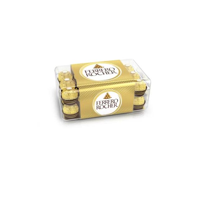 Ferrero Rocher е превъзходна пралина, направена от вафла, какаов крем и цял лешник, обвит в златна опаковка: уникална емблема на италианската елегантност и аромат. Перфектен за предлагане на вашите гости при специални поводи. Идеална идея за подарък