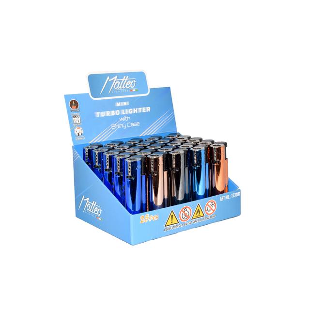 запалка матео 173101 turbo metal case rosegold-blue 25бр., zapalka mateo 173101 turbo metal case rosegold-blue 25br.