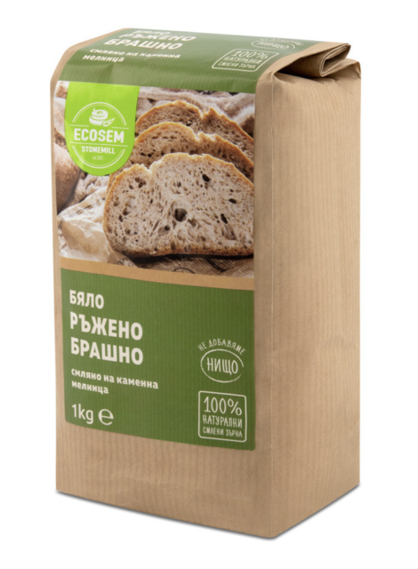 Смляно на каменна мелница, благодарение на което в зърното се запазват всички витамини, ензими, минерали и фибри, правещи брашното напълно натурално и здравословно.