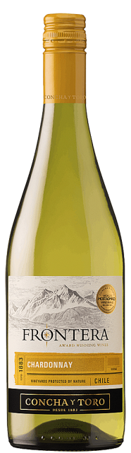 Frontera Chardonnay Сорт: Шардоне. Произход: Чилийско бяло сухо вино. Производител: Concha y Toro's Puente Alto cellar -Чили. Цвят: Бледожълт. Аромат: Плодов, дъх на папая, ябълки и цитрусови нотки, на масло и дърво. Вкус: Свеж, нежен, балансиран и леко сладък. Температура на сервиране: 8 - 10° С. Подходяща храна: Отлична комбинация със стриди, риба със сметанов сос, салати и ястия с бяло месо. Алк.: 12%.