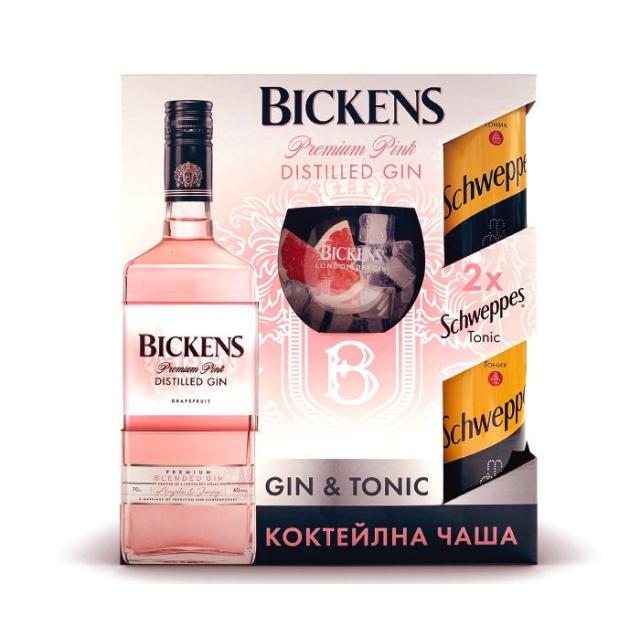 АНГЛИЙСКИ ДЖИН Бикенс/BICKENS Розов Грейпфрут + 2 Швепс Тоник + Чаша 700 мл
