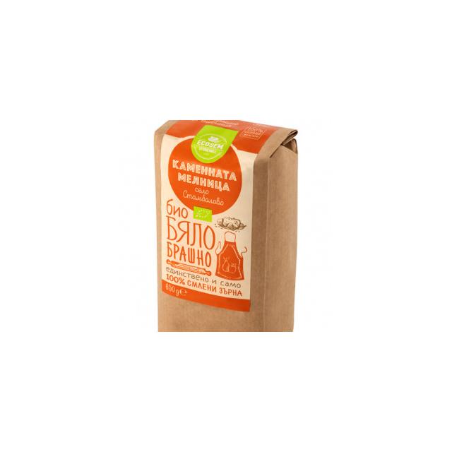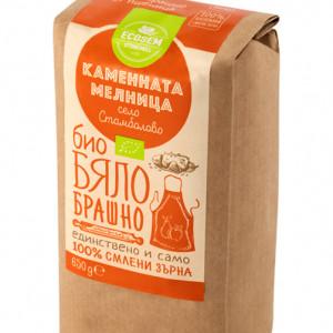 За да получим бяло брашно с пухкава структура, използваме био пшеница отгледана в България. Смиламе я на пълнозърнесто брашно, а от него отсяваме с най-финото сито всички трици. Резултатът е бяло брашно с характерен леко кремав цвят.