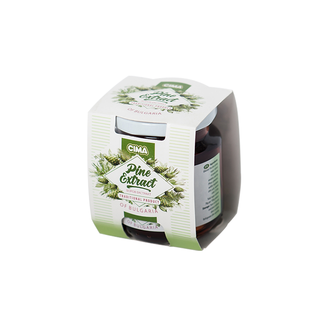 Съставки: глюкозо-фруктозен сироп, захар, екстракт от млади борови връхчета и шишарки, регулатор на киселинност: лимонена киселина, оцветител: Е150d.