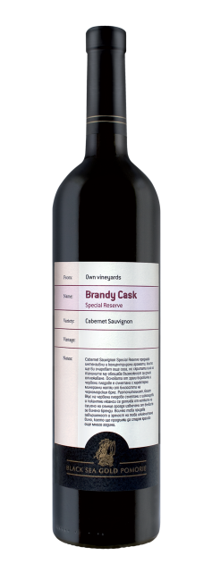 Бренди Касk е необикновено вино, направено от ръчно събирано и специално подбрано грозде от собствени лозя със захарност 24 градуса. Това Каберне Совиньон притежава уникална история. За разлика от всички други вина, Бренди Каск отлежава в бъчви от странджански дъб, където е зреело винено бренди повече от 30 години. Всичко това придава завършеност и зрялост на Бренди Каск- едно изключително вино, което ще продължи да старее красиво още много години. Името на Бренди Каск означава „лежал в бъчва от винено бренди”. ПРОЦЕС НА ОБРАБОТКА Ръчно събиране на гроздето в малки касетки и внимателен подбор на гроздовете и зърната; ферментация във френски дъбови бъчви, последвана от отлежаване на виното в дъбови бъчви, в които е зреело винено бренди.