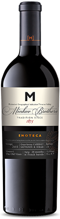 Enoteca е италианска дума, която произлиза от гръцката дума Οινοθήκη, което буквално означава „вино хранилище” , но се използва, за да опише специален вид регионални магазини или хранилища за вино, които са възникнали в Италия. ЕНОТЕКА е препратка към “вино библиотека” и намеква, че тези колекции са били създадени като практически източник на информация за специалните местни вина, а не като редовни възможности за реализация на широкия пазар. Тези колекционни, „библиотечни”- „енотечни” вина били предназначени за специални клиенти. Обикновено запасите от едно определено вино в една Enoteca са малки. Аромат: интензивен и много богат аромат, доминиран от подправки, шоколад и тютюн; във вкусовия аромат се добавят добре запазени конфитюрени нюанси на печени сливи и черни боровинки. Вкус: вкусът е плътен с меки, кадифени танини, с продължително въздействие и много дълъг финал, напомнящ за богатият аромат