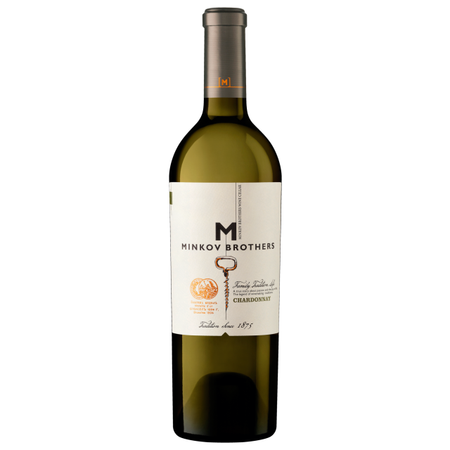 Minkov Brothers Chardonnay Сорт: Шардоне. Качествена категория: Защитено географско указание. Регион: Тракийска низина. Произход: Собствени лозя в Карнобатския край на изба Братя Минкови. Тип: Бяло сухо вино. Отлежаване: Ферментацията на 30% от виното е протекла в нови американски 225 литрови бъчви при строго контролиран режим. В същите бъчви е продължило отлежаването на виното в продължение на 6 месеца. Останалото количество е винифицирано по класическа технология в съдове от инокс при ниски температури със селекционирани дрожди. Цвят: Виното притежава светло златист цвят с красиви отблясъци и ярки зеленикави отенъци. Аромат: Интензивен и атрактивен със свеж характер. Откриват се нюанси на минерали, финни цветисти акценти, цитрус, ананас, банан и ванилия. Вкус: Вкусът е свеж, с добро тяло, с продължително въздействие и много интригуващ, а финалът е дълъг и ароматен, доминиран от престижни дъбови акценти, комбинирани с дискретни нотки на дим и цитрус. Температура на сервиране: 10 – 12° С. Подходяща храна: Консумира се с морски деликатеси, пушена сьомга, рибни терини, зеленчукови предястия, миди с винен сос, рибни ястия с ароматни сосове, бели меса с подправки.