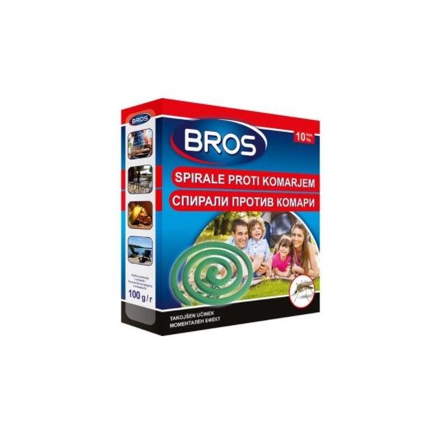 Bros Спирала против комари 10 бр е висококачествена спирала, отблъскваща и елиминираща комарите, както и други хапещи инсекти като например малки мухи. Брос Спирала против комари 10 бр е разфасовка от 10 инсектицидни спирали, предназначени за открити пространства. Една спирала е подходяща за пространство с площ от около 15 кв. м в продължение на до 4 часа. Спиралата е подходяща за двора, терасата, за лодка, къмпинг, по време на пикник. Специалната формула на субстанцията, използвана за спиралата, съдържа активна съставка, отделяща се с времето на горене на спиралата. По този начин тя отблъсква комарите за продължително време и ги спира да се върнат.