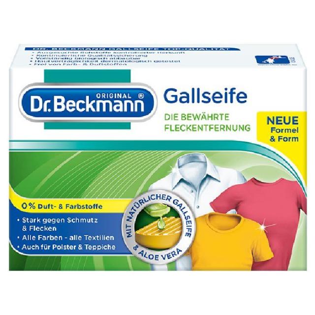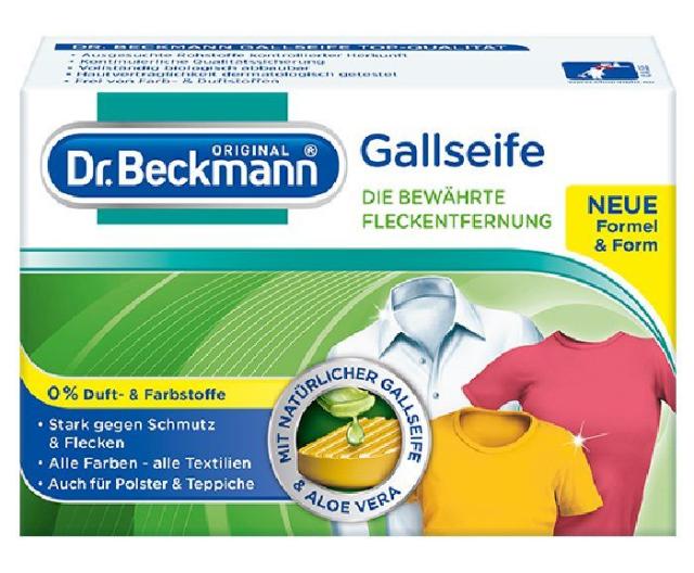 Сапунът за премахване на петна на Dr. Beckmann е доказано екологично средство за премахване на всякакви петна - от храна, грим, червило, кръв, мръсотия от яки и маншети, мазнини и още много други. Ефективен не само върху петна по дрехи и тъкани, но и върху килими и тапицерии. Нежен към тъканите, съдържащ натурално алое вера.