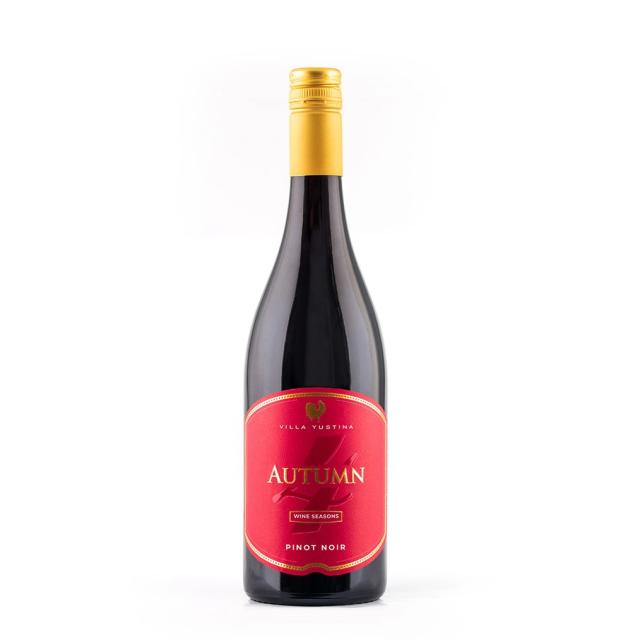 Есента е представена от Пино Ноар с искрящ рубинен цвят и интензивен нос с вишна, зряла черна череша и подправки. Сочно тяло с нежни танини и елегантен финал.
