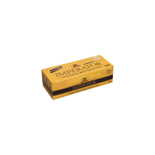 Цигарени гилзи IMPERATOR 200 BLACK CARBON са луксозни гилзи за пълнене, черни на цвят с дизайнерска златна лента на филтъра. Филтърът е карбонов, 20 мм дълъг, като дава максимална наситеност на вкуса. Карбонът подобрява вкуса на тютюна за постигане на максимално удоволствие. В една кутия има 200 броя цигарени гилзи. Цигарената хартия е от най-високо качество с черен цвят. Филтърът е уникална система от комбинация на моно-ацетат с карбон (активен въглен).