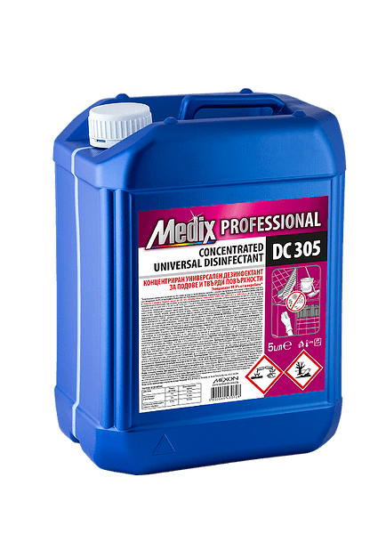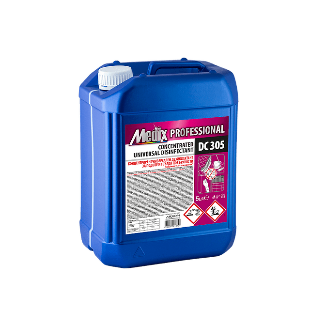 Медикс концентриран универсален дезинфектант за подове и твърди повърхности - 5л. DC 305 е вашето идеално решение за осигуряване на хигиенична и безопасна среда в дома и работното място. С мощната си формула, този дезинфектант успешно елиминира бактерии, вируси и гъбички, оставяйки повърхностите не само чисти, но и дезинфекцирани. Подходящ за различни видове материали, включително плочки, линолеум и дърво, Медикс DC 305 е идеален за употреба в кухни, бани и обществени пространства. Концентрираният му състав гарантира дълготрайни резултати с минимално количество продукт, което прави този дезинфектант икономичен и лесен за нанасяне.