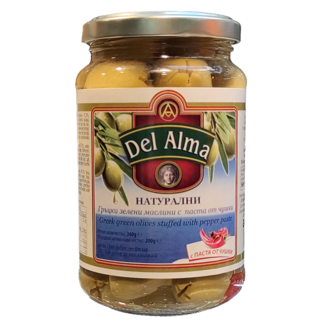 ДЕЛ АЛМА МАСЛИНИ 360Г ЗЕЛЕНИ С ЧУШКИ 360 гр