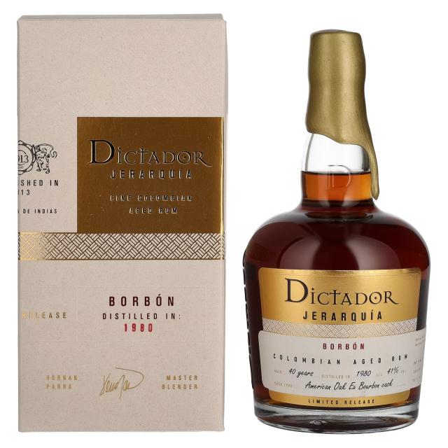 Насладете се на невероятния вкус и аромат на Dictador JERARQUÍA 40 години BORBÓN ром 1980 41% об. 0,7л в подаръчна кутия