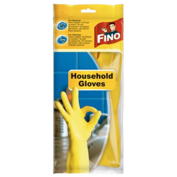 Домакинските ръкавици на FINO се предлагат с необходимата дебелина и специална неплъзгаща се текстура за оптимално прилягане върху ръцете, което дава перфектно усещане при допир и абсолютен контрол на движенията при употреба. Идеални са за ежедневната домакинска работа (миене на съдове, чистене на пода, др.), както и за външни услония (тераси, балкони, др.) Произведени са от 100% натурален латекс със специално памучно покритие за допълнителен комфорт.
