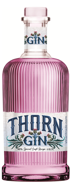 Thorn Gin Pink Craft GIN произведен по класическа технология на парна дестилация по специална Английска рецепта. Съставки: Хвойна, розмарин, сицилиански жълт лимон, салвия, и сок от планинска ягода. Цвят: Наситен розов цвят. Аромат: На хвойна, с нотки на розмарин и ягода. Вкус: Класически нотки на хвойна, цитрус и ягода. Температура на консумиране: Сервирайте Джин Торн Пинк /Thorn Gin Pink/ добре охладен при 4-6° С. Джиньт може да се консумира само с лед. Алк.: 40%.