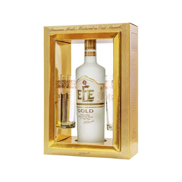 Анасонова напитка от пресни гроздови зърна! Отлежава 120 дни в дъбови бъчви. Създадено от грозде и анасон от Анадола, Турция. Отлежава 120 дни в дъбови бъчви, което му придава отличителен мек вкус, цвят и аромат. Според изискванията за производство на Ракъ в Турция могат да се добавят максимум 10 грама захар на литър в процеса на производство. EFE Gold няма добавена захар!