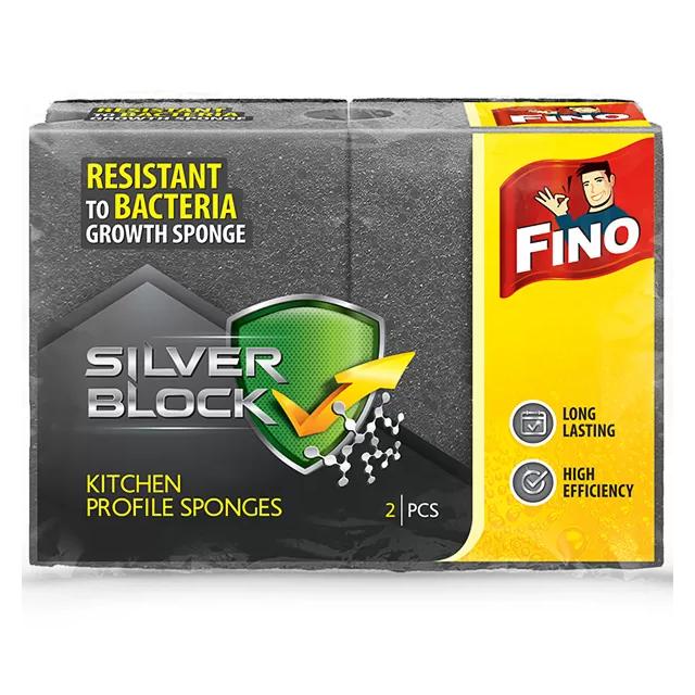 Иновативният състав на Fino Silver Block, предотвратява растежа на бактерии* в цялата гъба, осигурявайки чистота и хигиена! В същото време с технологията Silver block миризмите, дължащи се на бактерии, са сведени до минимум. Твърдата страна на гъбата премахва дори най-упоритите замърсявания като мазнини и петна, докато другата страна създава повече пяна.