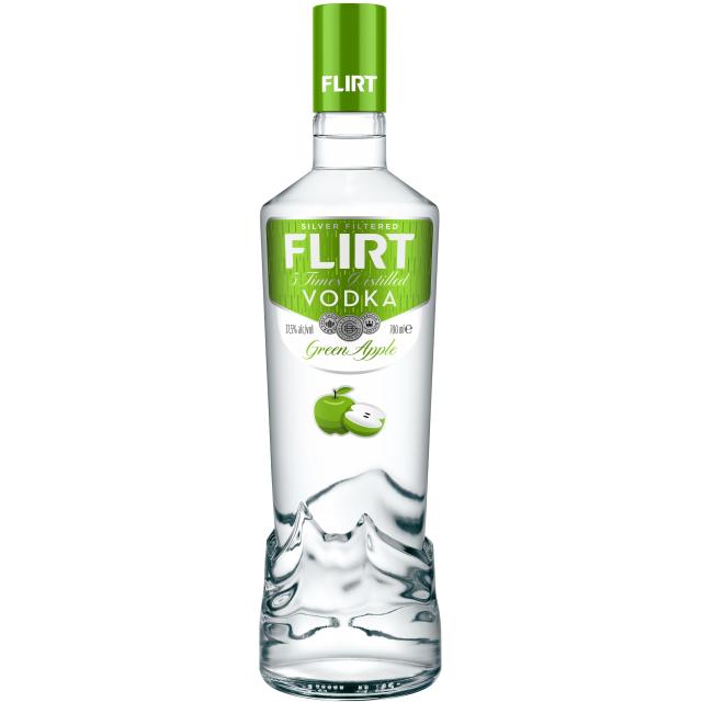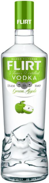FLIRT Green Apple / Флирт Зелена Ябълка е първата българска водка с вкус и аромат на свежа зелена ябълка. Ароматът на плода е максимално съхранен, благодарение на нови италиански технологии. Алк.: 37.5%