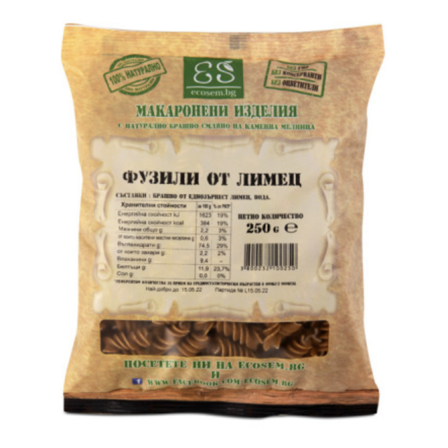 Фузили от 100% брашно от лимец смляно на каменна мелница от Екосем.