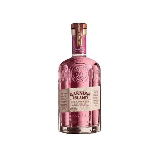Ирландската група за спиртни напитки West Cork Distillers пусна Irish Pink Gin под своята марка джин Garnish Island. Поместен в специално изработена шестоъгълна бутилка, спиртната напитка включва растения, произхождащи от италианските градини на остров Гарниш в Западен Корк. Стъклената бутилка по поръчка се отличава с удължено гърло и извити рамене. Всяка фасетка на шестоъгълната бутилка изобразява едно от растенията, използвани в джина. Дебелата долна част на бутилката носи името на главния дестилатор на марката. На лицевата страна неправилно изрязаният етикет съчетава дигитален печат в цветове pantone с UV тактилен брайлов лак и дискретни акценти от златно горещо фолио. Околният текст и флоралните орнаменти са дигитално отпечатани и след това релефни. Обгръщащ се етикет за врата във цвят на фуксия със златни детайли държи запушалката на място, избягвайки необходимостта от пластмасово уплътнение. Алкохолът е покрит със запушалка от естествен корк, включваща лакирана дървена капсула.