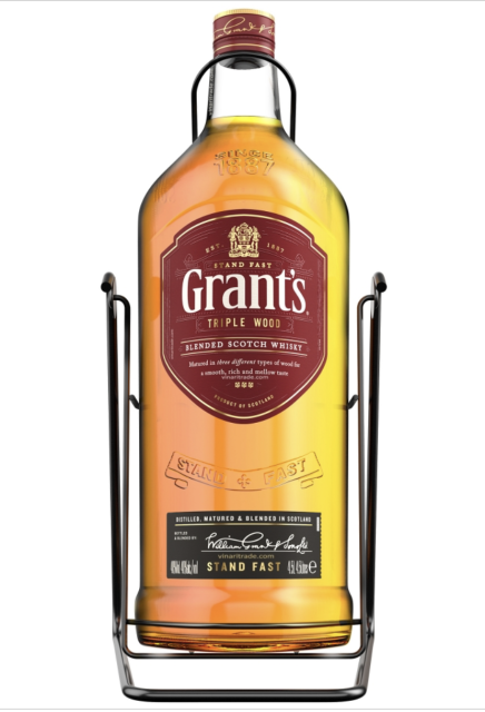 Висококачествено шотландско Грантс Трипъл Ууд Блендед Скоч Уиски 4.5 л Люлка с Картонена Кутия.
