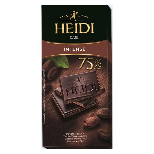 Тъмен шоколад Хайди Дарк Интенз. Шоколад Хайди с интензивен вкус на какао. Тъмен шоколад Хайди Дарк Интенз. Може да се използва както за директна консумация, така и за приготвянето на различни сладкиши. В нашия блог може да разгледате интересни изпитани рецепти за десерти с шоколадите на Хайди! Шоколадът Хайди е едно от най-новите попълнения в богатото портфолио на марката Хайди. Доказано е, че консумирането на тъмен шоколад може да има благоприятно въздействие върху здравето на хората и дори е полезен.