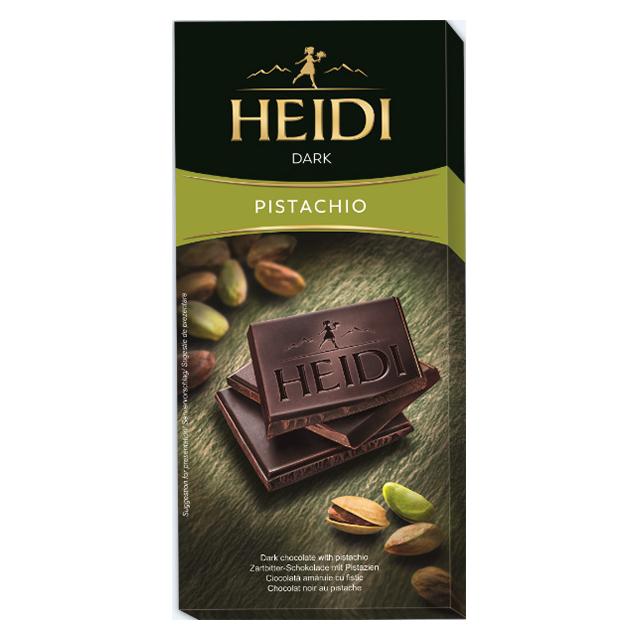 Тъмен шоколад Тъмен шоколад Хайди с шам-фъстък. Шоколад Хайди с интензивен вкус на какао. Тъмен шоколад Хайди с шам-фъстък. Може да се използва както за директна консумация, така и за приготвянето на различни сладкиши. В нашия блог може да разгледате интересни изпитани рецепти за десерти с шоколадите на Хайди! Шоколадът Хайди е едно от най-новите попълнения в богатото портфолио на марката Хайди. Доказано е, че консумирането на тъмен шоколад може да има благоприятно въздействие върху здравето на хората и дори е полезен.