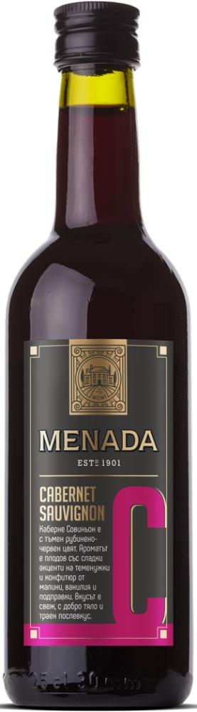Каберне Совиньон Менада е, вино което ще отговори на вашия вкус. Каберне Совиньон Менада е: Вино с тъмен рубинено-червен цвят. Вино със свеж вкус, с добро тяло и траен послевкус. Вино с аромат на теменужки и конфитюр от малини, ванилия и подправки. Подходящо за консумация с твърди сирена, яйца, птиче месо и колбаси.