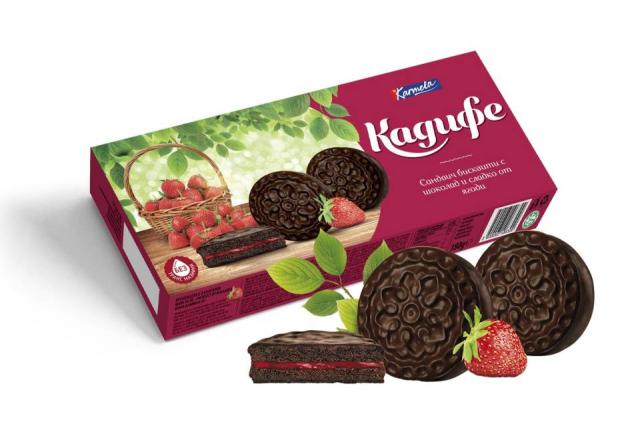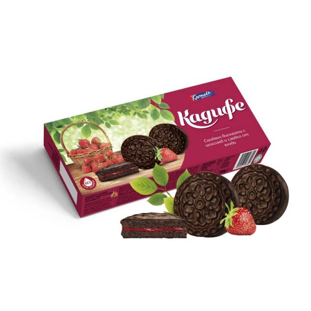 Шоколадови сандвич бисквити с плодов пълнеж ягода са неустоимо вкусни. Неустоима компания, когато ти се похапва нещо сладко, и изкусително вкусно. Опитай и се наслади!