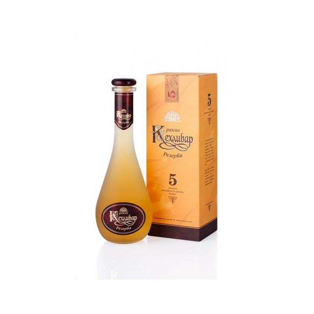 Гроздова ракия Кехлибар 5г. Резерва 0,50л е изключителна българска ракия, създадена с внимание към всяка детайл. Тя отлежавала 5 години в специални бъчви, което й придава богат и дълбок вкус, като запазва плодовия аромат на зрело грозде, съчетан с фини нотки на дърво и ванилия. Кехлибар 5г. Резерва е ракия с характер и изисканост, която ще задоволи дори най-високите изисквания на ценителите.