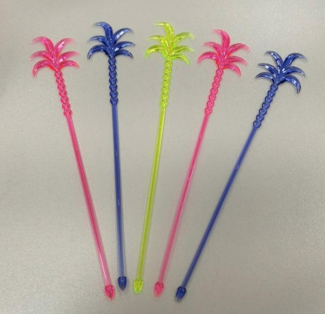 КОКТЕЙЛИ БЪРКАЛКИ - ПАЛМИ. КРИСТАЛЕН ПОЛИСТИРОЛ В СВЕТЛООТРАЗИТЕЛНИ ЖЪЛТИ, СИНИ, РОЗОВИ И ОРАНЖЕВИ ЦВЕТОВЕ, ВИСОЧИНЗ - 210 ММ