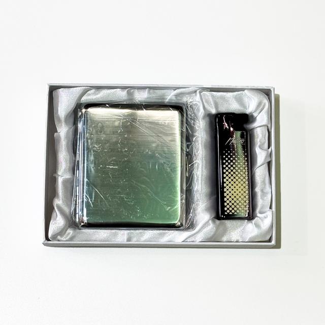 КОМПЛЕКТ МЕТАЛНА ТАБАКЕРА+ЗАПАЛКА СИЛВЪР 200 гр
