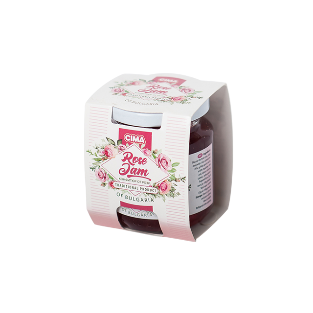 Съставки: глюкозо-фруктозен сироп, цвят от маслодайна роза, захар, желиращ агент: пектин, регулатор на киселинност: лимонена киселина, натурален оцветител: антоциани.