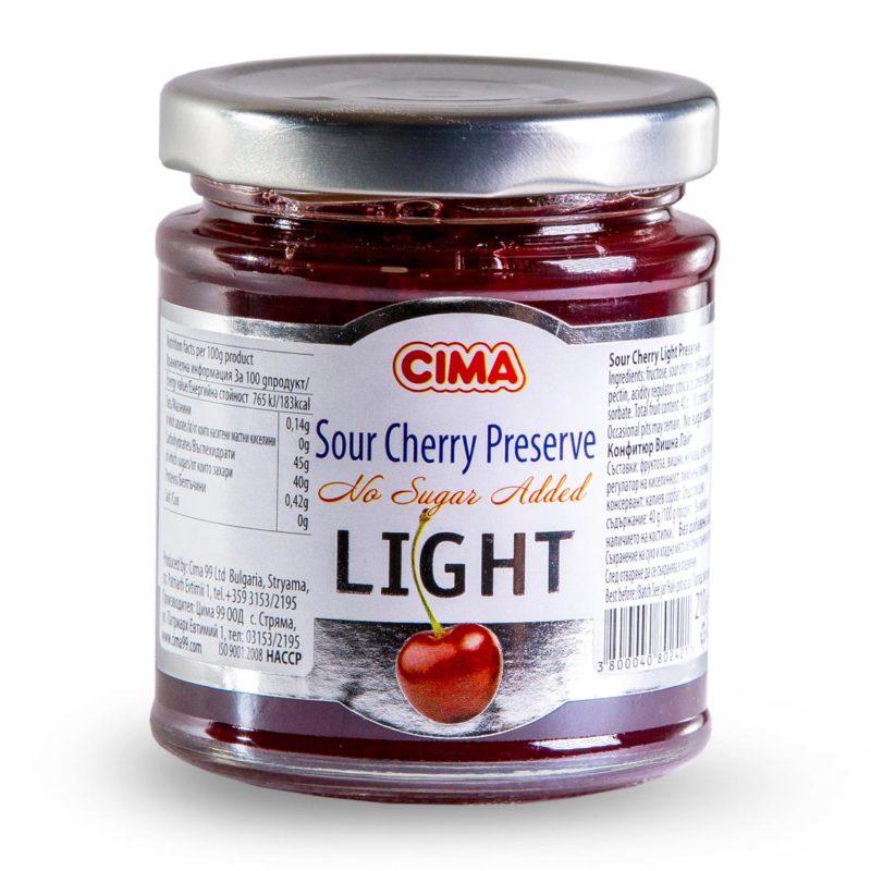 Съставки: фруктоза, вишни, желиращ агент: пектин, регулатор на киселинност: лимонена киселина, консервант: калиев сорбат.