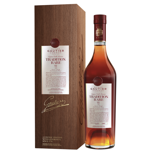 TRADITION RARE е върхова точка в асортимента на GAUTIER. Произведен е в малки серии от най-старите eaux-de-vie от „Райските изби“ на GAUTIER. Конякът е изключителен бленд със запомняща се щедрост във вкуса, сила и характер. Елегантен и хармоничен, TRADITION RARE разкрива своите безкрайни аромати, които ще бъдат високо оценени от познавачите. Всяка бутилка е с уникален номер, а вложените дестилати в този коняк са на възраст между 30 и 50 години. Аромат: мощен и богат, на захаросани плодове и портокалова кора, допълнени от пикантни и дъбови нотки. Вкус: впечатляващ и сякаш с безкраен финал, с нотки на дюли, печен ананас и деликатни подправки. Перфектният начин на консумация: Чист, на стайна температура.
