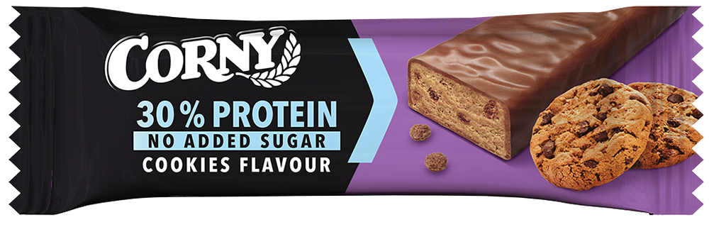 Сила и удоволствие – Corny Protein Power съчетава богат вкус от 30% висококачествен протеин (направен от суроватка, мляко и соя) и хрупкави оризови криспита, обвити с вкусен млечен шоколад. Без палмова мазнина и без добавена захар. Барът Бисквита от серията съдържа вкусен млечен шоколад с подсладител, хрупкави оризови криспита, кремообразен протеинов пълнеж с какао и естествени аромати. Съставки МЛЕЧЕН шоколад с подсладител 17% (подсладител малтитол, какаово масло на прах, какаова маса, какао на прах с намалена масленост, емулгатор лецитини), СОЕВ протеин, протеин от СУРОВАТКА, подсладител малтитол сироп, овлажнител глицерол, олигофруктозза, рапично масло, МЛЕЧЕН протеин, СОЕВИ люспи, какао, съдържащо оризови хрупки (оризово брашно, какао на прах с намалено съдържание на мазнини), кокосови стърготини, какао на прах с намалено сържание на мазнини, естествен ароматизатор, емулгатор лецитин (СОЯ). Прекомерната консумация може да причини слабително действие. Може да съдържа ЯДКИ и ФЪСТЪЦИ.