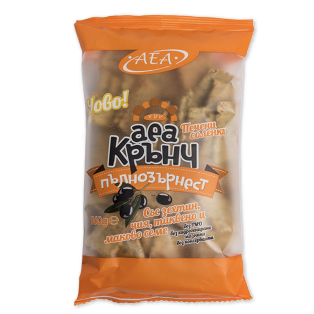 Печени соленки за хората, които се стремят да се хранят здравословно! Крънч се приготвя от пшенично брашно, зехтин, бяло вино, сусамово и ленено семе. Крънч са любими на цялото семейство!