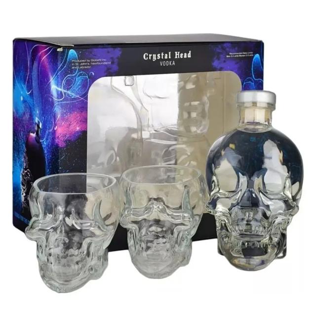Кристъл Хед Череп 0,70 л с 2 череп чаши е луксозна канадска водка, известна със своето уникално и елегантно череповидно стъклено съдържание. Водката предлага изключително чист вкус, благодарение на специалния процес на филтрация през диаманти, който придава на напитката невероятна мекота. С комплект от две шот чаши в форма на череп, този продукт е идеален за подарък или за специални поводи, като ще внесе стил и изтънченост във всяко събиране. Насладете се на уникалния дизайн и премиум качеството на Crystal Head Skull.