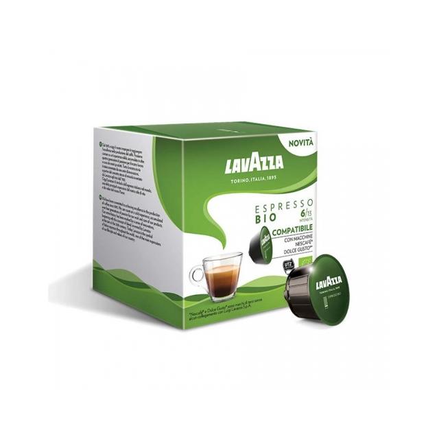 Био кафе от органични насаждения. 100% Арабика. Lavazza е избрала висококачествено 100% кафе Арабика от органични насаждения в Централна и Южна Америка. Сладко и балансирано, внимателното смесване, бавното печене усилват аромата му и придават деликатни плодови нотки. Деликатен печен, сладък и кадифен каймак. Съвместими капсули за машини NESCAFÉ® DOLCE GUSTO®.