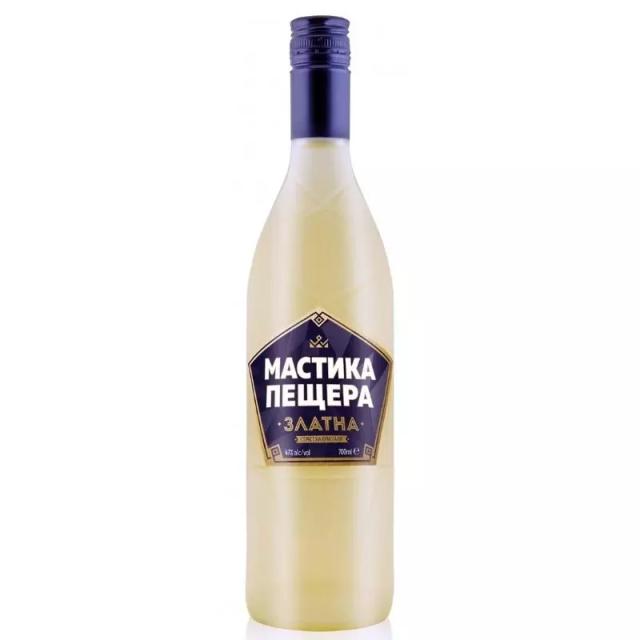 Мастика Пещера ЗЛАТНА е представител на голямото семейство на анасоновите аперитиви. Тя е произведена от висококачествен етилов алкохол и анасоново масло, които при охлаждане сформират така характерните за мастиката кристали. Анасоновото масло е известно със своето стимулиращо, освежаващо и тонизиращо действие, както и с уникалния си екзотичен аромат. Състав: Високоалкохолна анасонова спиртна напитка Алкохолно съдържание: 47%