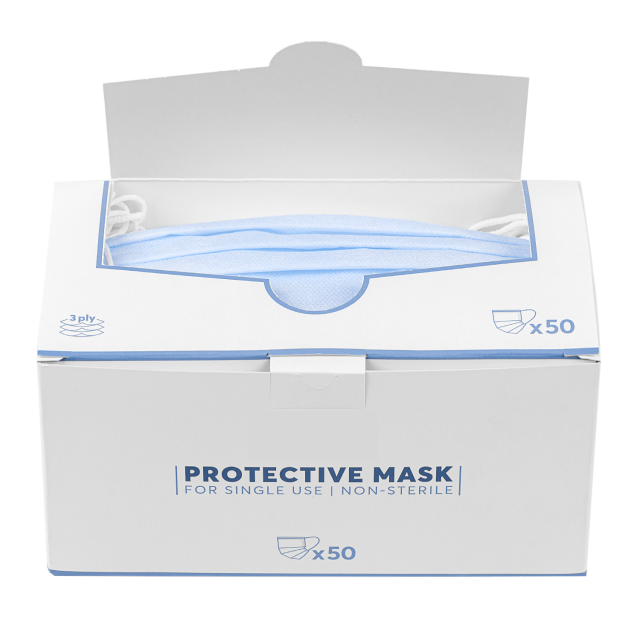 Мед. еднократна маска 3 пласта 50бр/кутия 250 гр