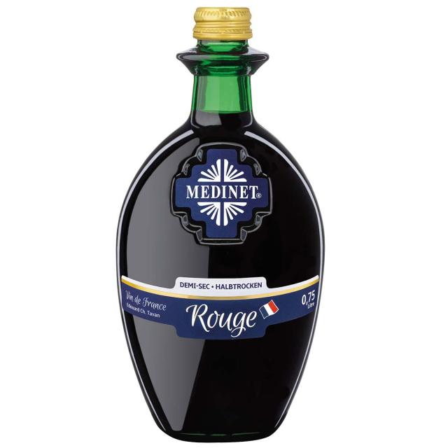 Медине Червено Полусухо червено вино от слънчевите лозя на Languedoc-Roussillon, разположени между долината на р. Рона и Пиринеите. Купаж от сортовете гренаш, каринян и сира. Притежава плътно тяло, разкриващо богат плодов букет с мек дълъг финал. Съчетава се много добре с барбекю, дивеч и паста с червени сосове. Температура на сервиране 14-17° C.